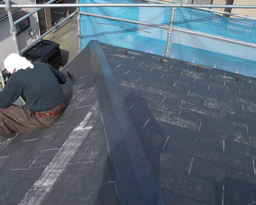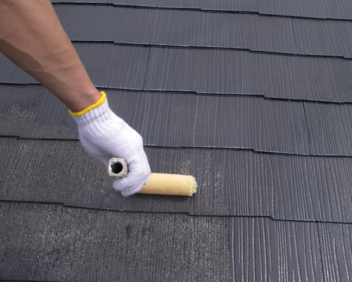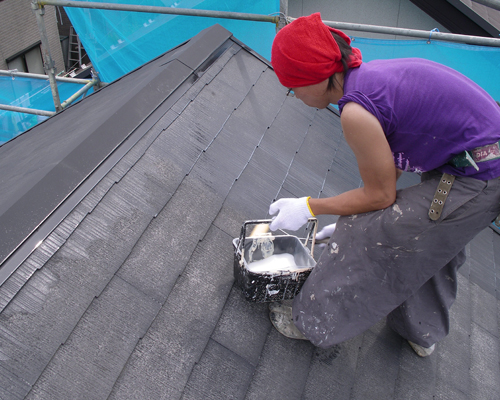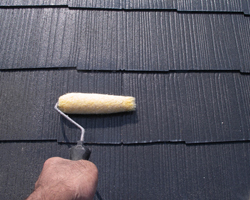 | 洗浄後の屋根です。白地が出て白く見えます | 下塗り(シーラー)をします |